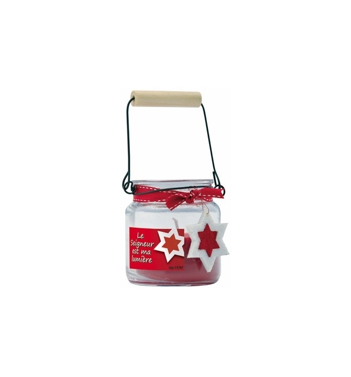 Jolie bougie rouge parfumée, dans son petit pot avec sa petite étoile !