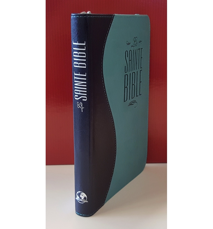 Bible Segond 1910, duo bleu nuit turquoise, similicuir souple, avec fermeture éclair