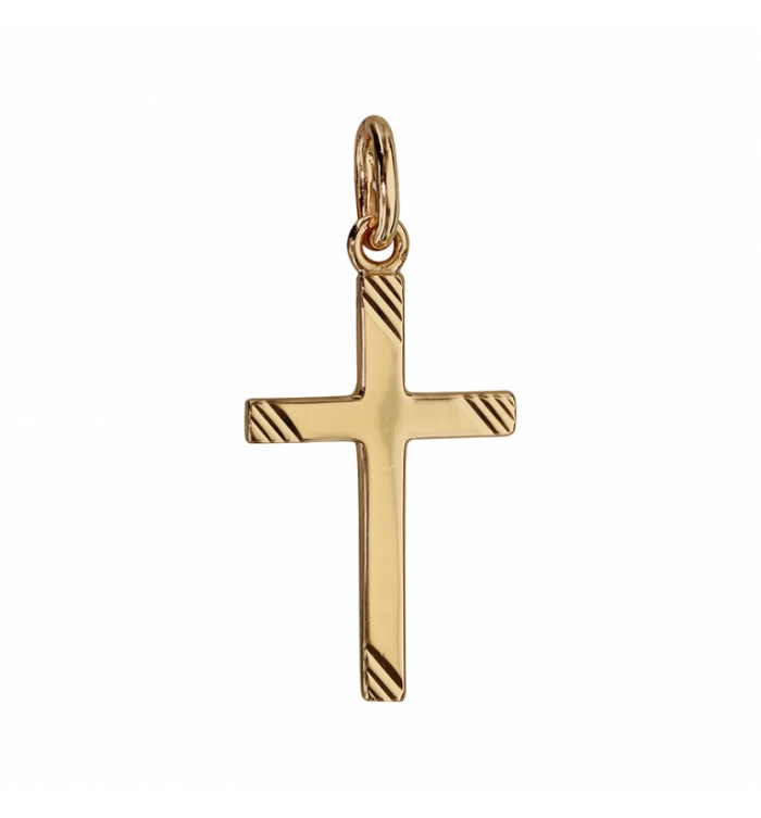 PENDENTIF CROIX PLAQUÉ OR STRIE