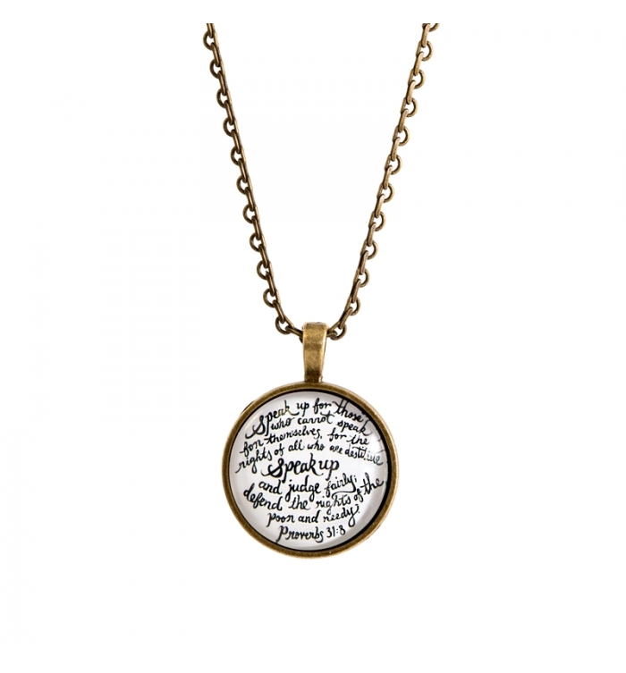 Chaîne et pendentif en acier inoxydable plaqué or 18 carats, gravé avec "Speak Up".