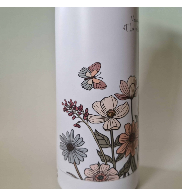 Bouteille isotherme blanche, bouchon à vis.
