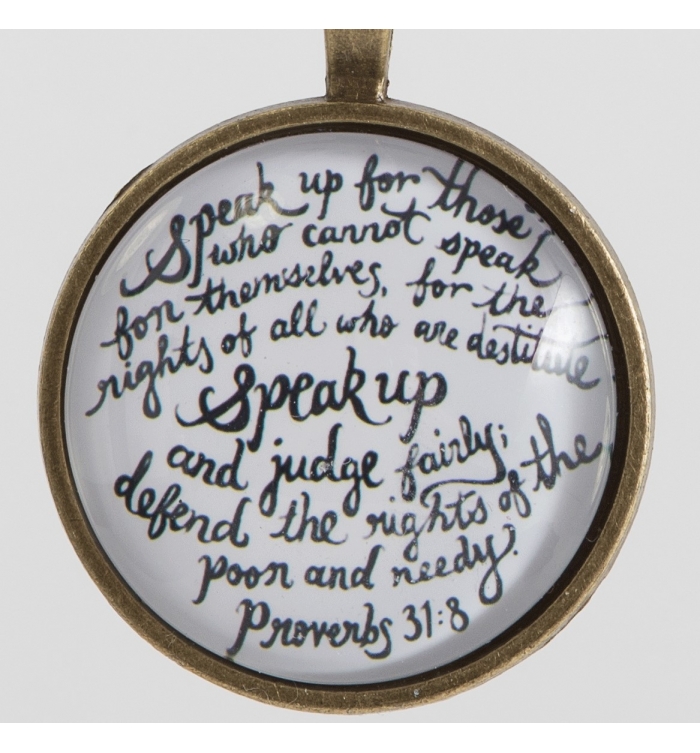 Parlez pour ceux qui ne peuvent pas parler d'eux-mêmes, pour les droits de tous ceux qui sont démunis. Parlez et jugez équitablement ; défendre les droits des pauvres et des nécessiteux. - Proverbes 31: 8-9.