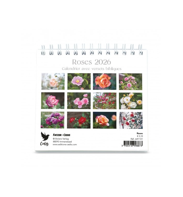 Calendrier 2 en 1 (Recto - Verso). Chaque calendrier de cette série a un calendrier supplémentaire imprimé au dos (ici : Bouquets). De cette façon, vous pouvez au moment voulu tourner le calendrier et profiter d'un autre thème. Tous les calendriers sont agrémentés de versets bibliques et sont illustrés par un dessin moderne aux couleurs pastels.