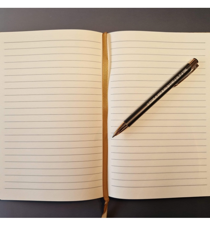 Carnet A5 à couverture rigide avec liège sur la partie supérieure et lin sur la partie inférieure, avec un support pour stylo (non inclus). Il contient 160 pages lignées papier ivoire.