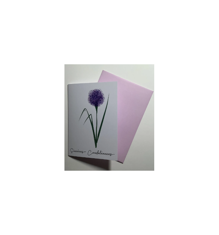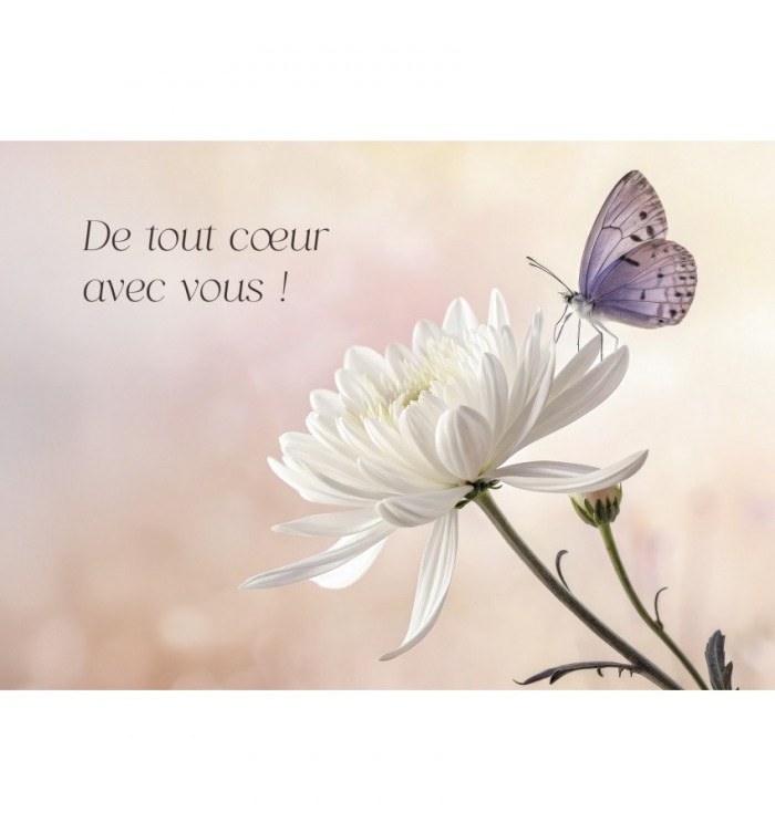 Carte Avec Message Fleurs de lys posées sur du marbre blanc.