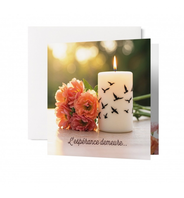 Carte Avec Message Fleurs de lys posées sur du marbre blanc