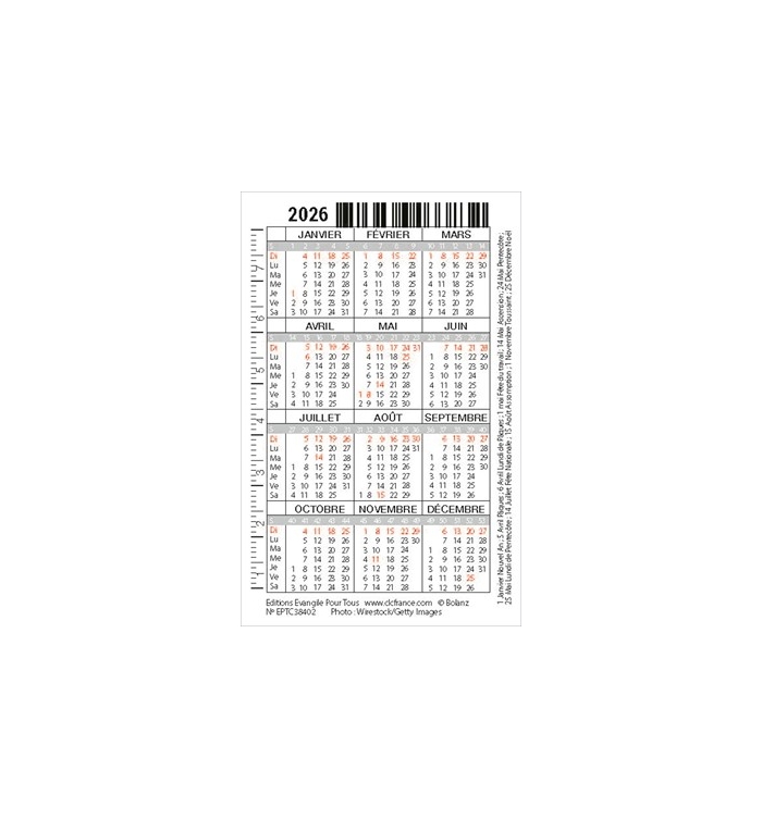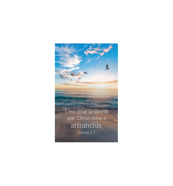 C'est pour la liberté que Christ nous a affranchis. Galates 5.1Carte calendrier avec verset biblique à offrir ou à glisser dans son portefeuille. Au format 5,5 x 8,5 cm.
