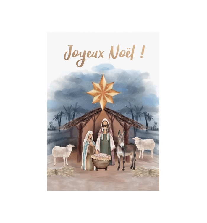 Carte Joyeux Noël Crèche peinte