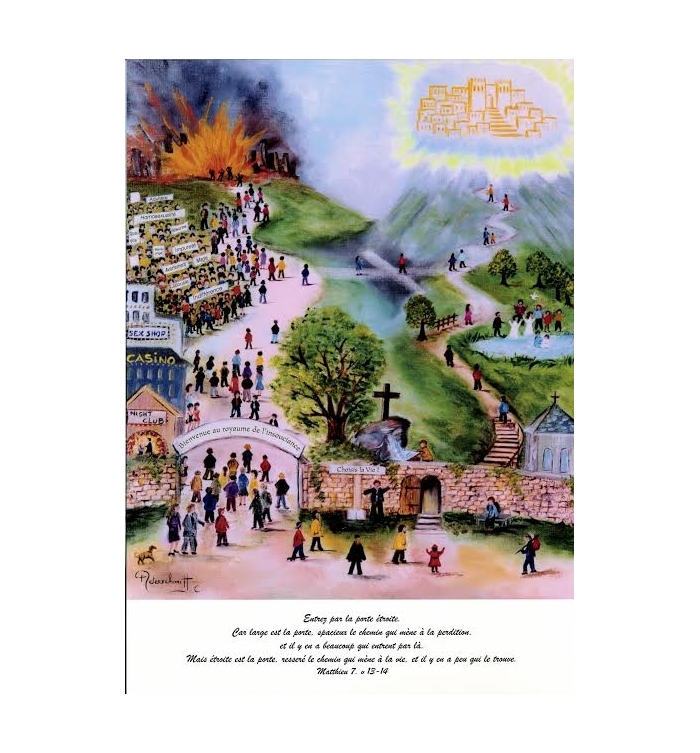 Entrez par la porte étroite. Car large est la porte, spacieux est le chemin qui mènent à la perdition, et il y en a beaucoup qui entrent par là. Matthieu 7 versets 13 et 14.