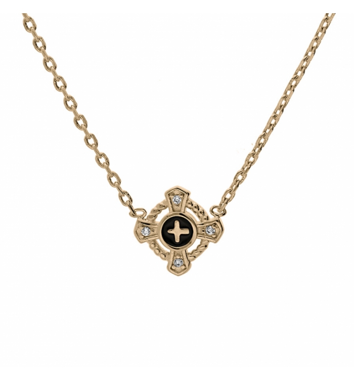 COLLIER ACIER DORÉ PENDENTIF CROIX OXYDES...