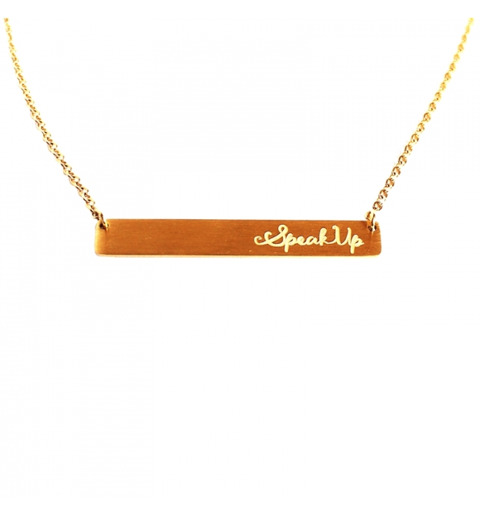 Chaîne et pendentif en acier inoxydable plaqué or 18 carats, gravé avec "Speak Up".