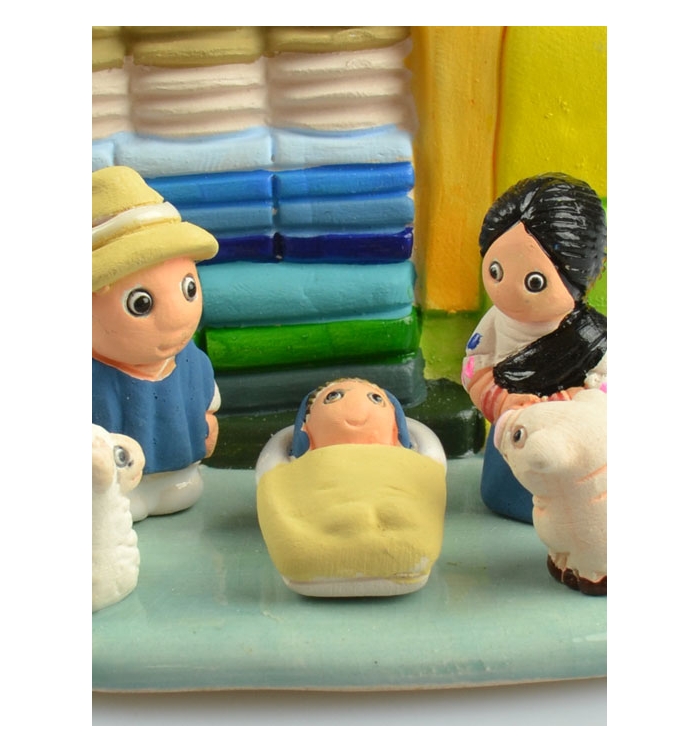 Crèche du Monde - Nativité Équateur, cette jolie crèche artisanale est en céramique peinte à la main. La crèche avec les santons mesure 8 X 7 cm. Une belle idée cadeau pour toute occasion !