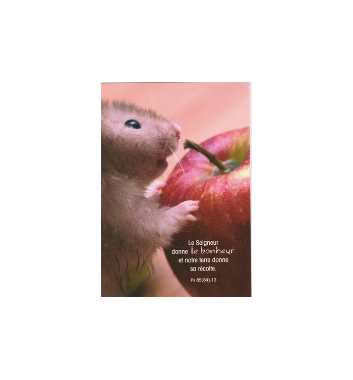 La carte est accompagnée d'une enveloppe assortie, ainsi que d'un feuillet avec le verset : "Comme ton amour me ravit... je le trouve plus envirant que le vin !" (Cantique 3,10)