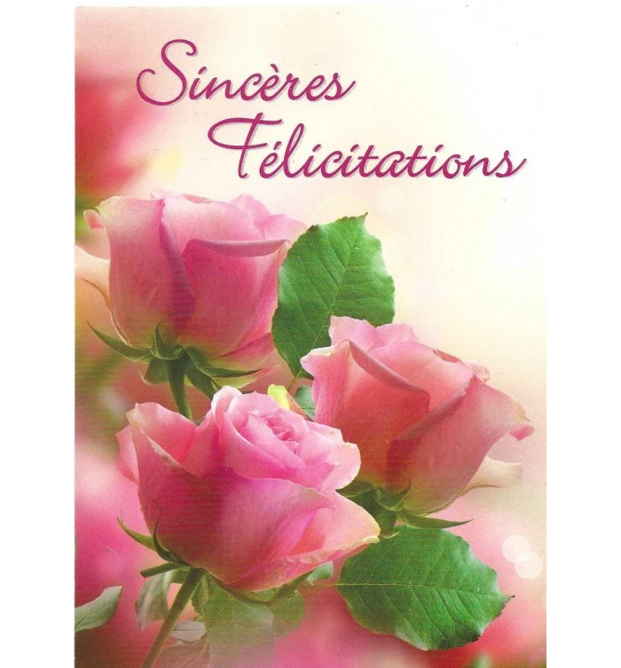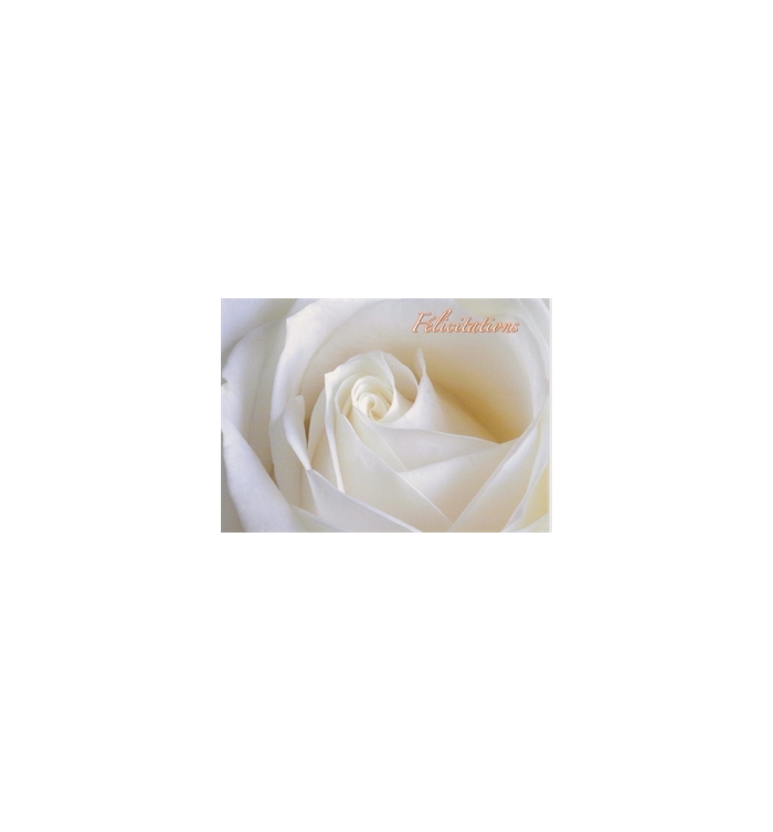 Jolie carte double motif Couronne de roses sur fond blanc et le texte "Félicitations". La carte est accompagnée d'un feuillet avec verset, emballée dans un film plastique et enveloppe de couleur blanche. Format : 15x15 cm