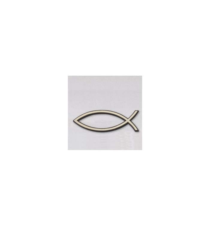 Planche de 29 autocollants dorés Ichtus en 4 tailles : 2, 3, 4,5 et 9 cm Format : feuille 10 x 23 cm