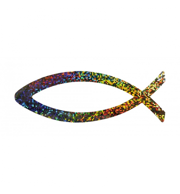 Autocollant Ichtus magnétique "Arc-en-ciel" scintilant. La couleur change dans les couleurs de l'arc-en-ciel en fonction de l'incidence de la lumière. Dimensions : 11 cm