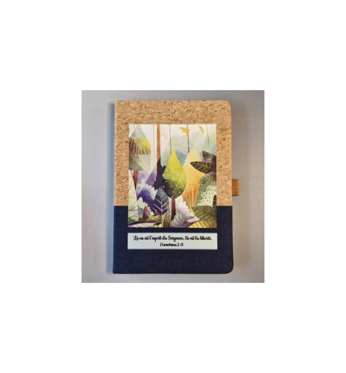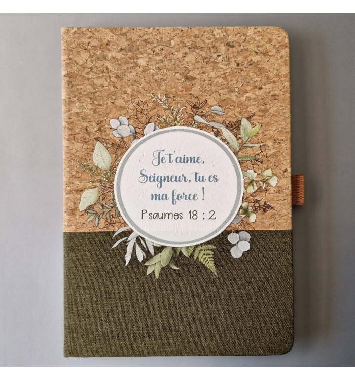 Carnet A5 à couverture rigide avec liège sur la partie supérieure et lin sur la partie inférieure, avec un support pour stylo (non inclus). Il contient 160 pages lignées papier ivoire.
