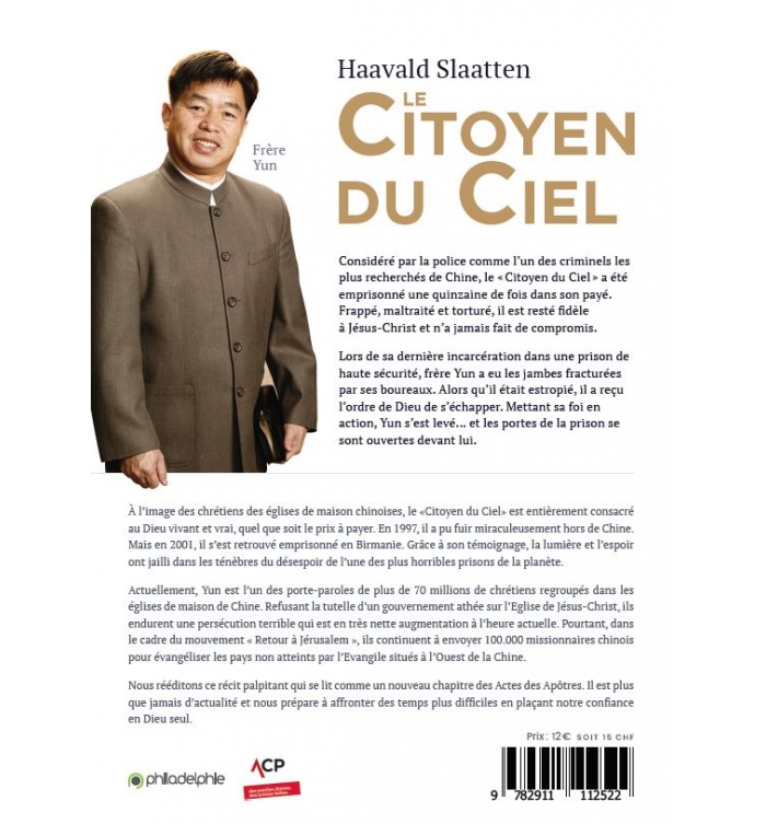 Depuis sa libération, Yun est le porte-parole de plus de 70 millions de chrétiens regroupés dans les églises de maison en Chine. Refusant la tutelle d'un gouvernement athée sur I'Eg|ise de Jésus-Christ, ces frères et sœurs endurent une persécution terrible. Pourtant, dans le cadre du mouvement "Retour à Jérusalem", ils se préparent à envoyer 100 000 missionnaires hors de leurs frontières pour évangéliser les pays situés à l'Ouest de la Chine.