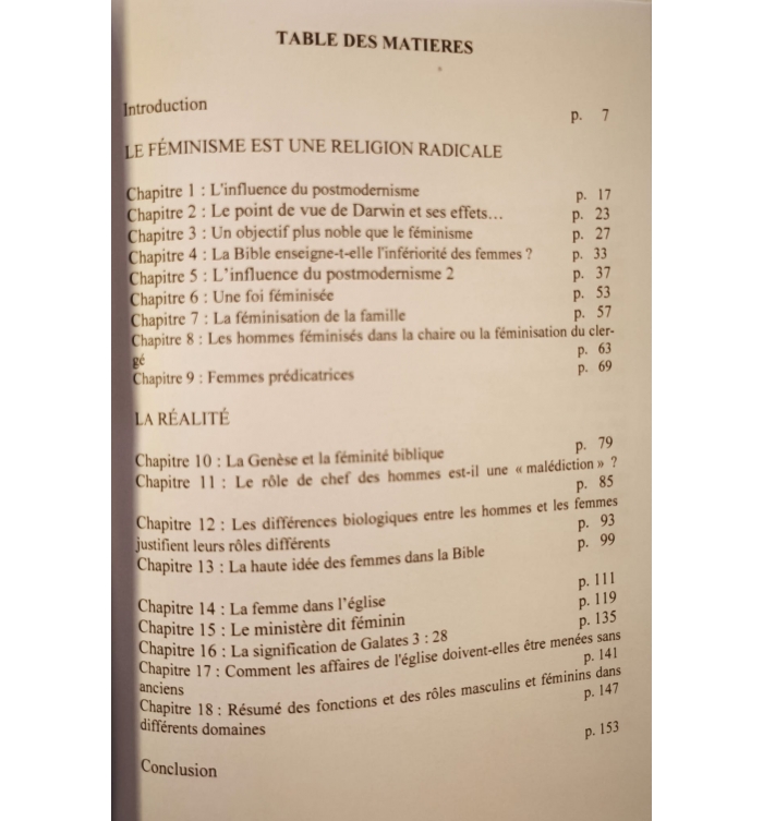 Le féminisme moderne extrême place les femmes en position d'autorité par rapport aux hommes, alors que l'évolution darwinienne traditionnelle place les femmes bien en dessous des hommes. Et puisque la Bible