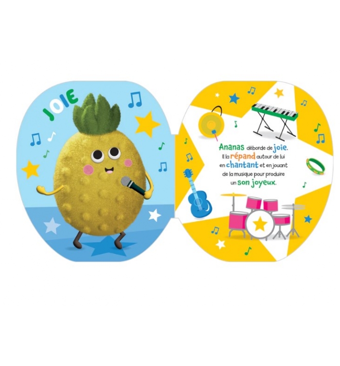 La peluche offre aux jeunes enfants une expérience douce et chaleureuse. L’histoire à l’intérieur leur permettra de découvrir les qualités de chaque fruit de façon amusante et bien ancrée dans la vie des enfants !