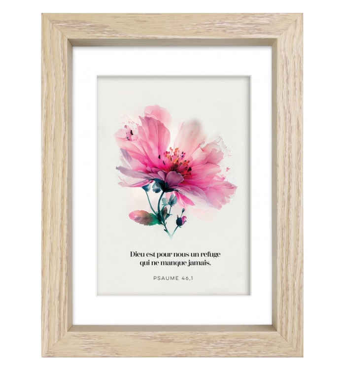 Découvrez notre nouveau cadre déco avec le verset Dieu est pour nous un refuge qui ne manque jamais. - Psaume 46, 1