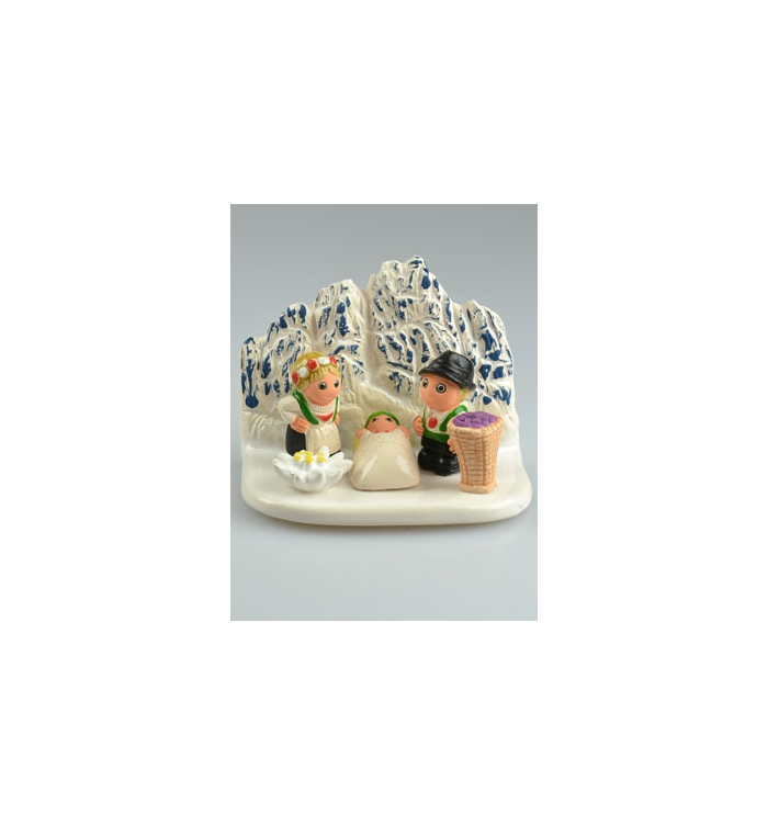 Crèche du Monde - Nativité Région de Trentin, cette jolie crèche artisanale est en céramique peinte à la main. La crèche avec les santons mesure 8 X 7 cm. Une belle idée cadeau pour toute occasion !