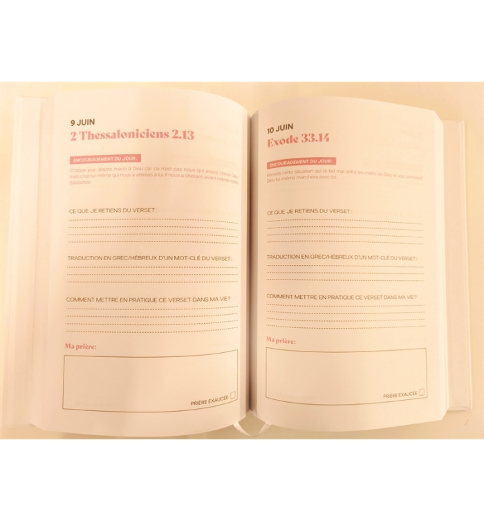 Chaque page est une invitation à t’arrêter, à respirer et à recevoir la grâce que Dieu veut déverser sur ta vie. Ce n’est pas un simple planner, c’est un espace de rencontre entre toi et ton Créateur.