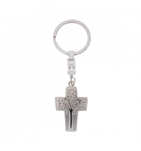 Porte-clé croix et gravure arbre de vie