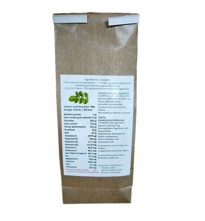 POUDRE DE FEUILLES DE MORINGA OLEIFERA 250g – AGRICULTURE RÉGÉNÉRATRICE
