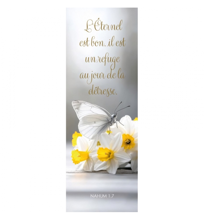 Signet avec verset biblique Illustration de Jésus portant une brebis. Format : 5,2 x 14,8 cm