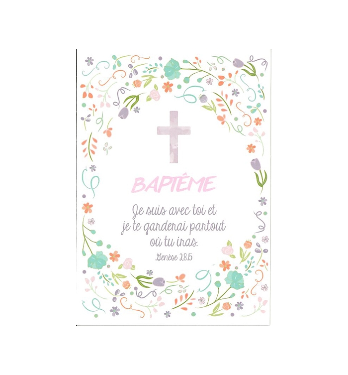 Joli signet avec "Bouquet de fleurs blanches sur fond rose" et le verset Les bontés du Seigneur se renouvellent chaque matin. (Jéremie 3,23)